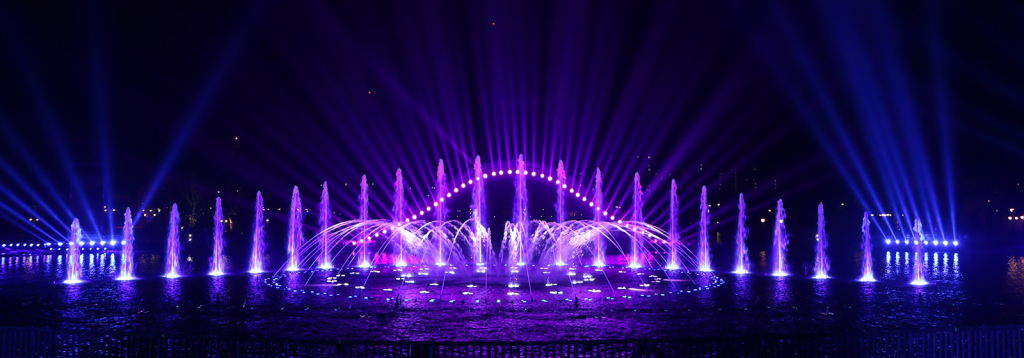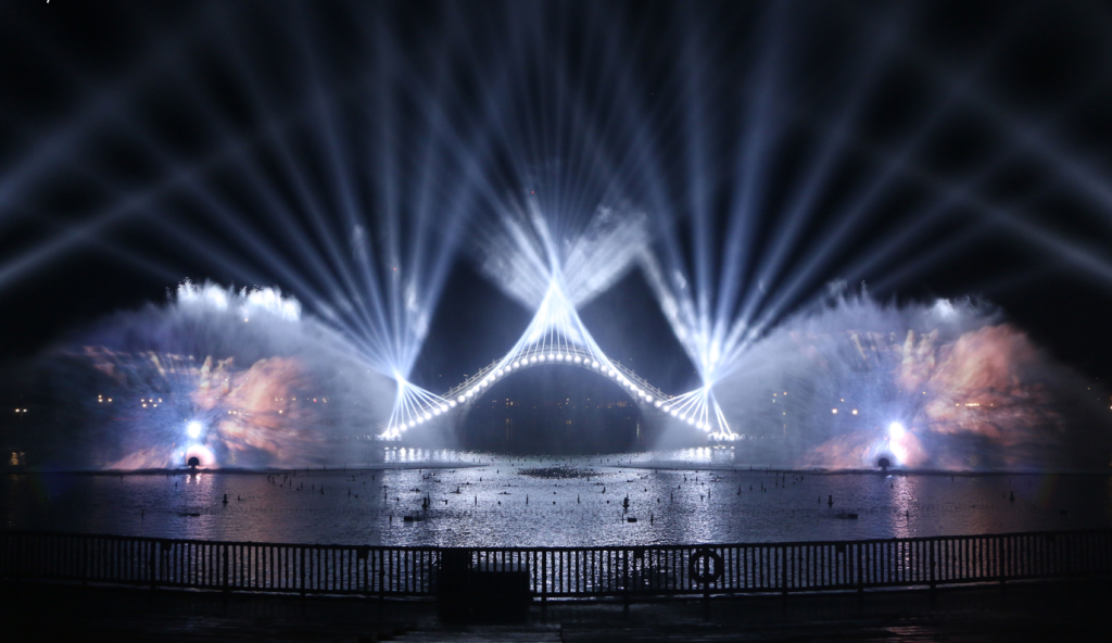 Bridge of Light, a large-scale urban large-scale aquatic sound and light show, was produced by Vanyee in 2016. It is a project integrating creativity, imagination and artist, uses natural garden landscape and multi-level 3D water curtain imaging technology to form a new stage scene. It skillfully uses the rich fountain water effects and surround sound layout to reproduce the beauty of time and space in a three dimensional manner, creating a performance effect that pleases each scene, and creating a panoramic experience of water viewing in the theme park.